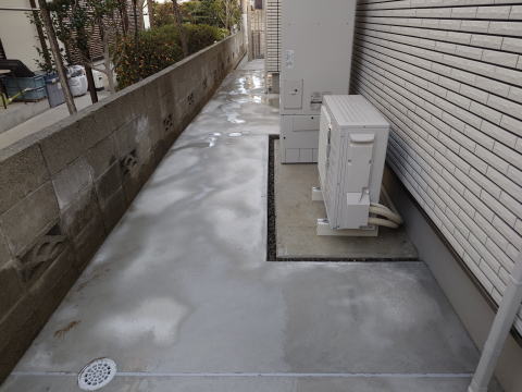 新築の周りはすべて犬走りコンクリート打ちにしました。近年では生コンクリートの価格高騰の為に家の周りは砕石敷が多くなっていますが、雑草対策の為に新築の周りほぼすべてコンクリート打ちと致しました。。