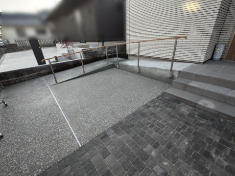 スロープの土間仕上は刷毛引き仕上としております。