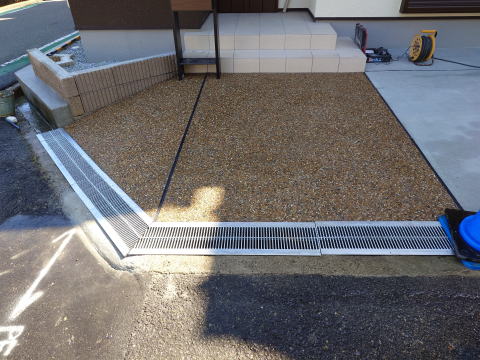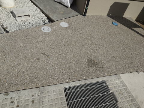![]() ジャミの洗い出しと名前は似ていますが、仕上がりは少し違う工法。生コンクリートをそのまま打設して、乾き際に水で洗い流して仕上げる方法。色が生コンクリートをそのまま使用するので、グレーっぽい色には仕上がります。 メリット:ジャミ洗いだしと比べると、下地を施工する必要が無いために費用は抑えられます。土間コンクリート打ちよりは少し高いくらいになります。 デメリット:生コンクリートを使用するので色が選べません。この色のみとなります。 |