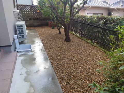 ![]() 最も低価格な仕上。とは言っても、真砂土も昔に比べると大分材料費が上がってしまいました。さらに低価格なのが、現状均し(^^)。均し代のみです。外構工事完了後、DIYにて人工芝敷いたり、砂利を敷きたい方にはお勧めの仕上。なお、完了後は当然草が生えてきます。産地は岸和田、御所か海辺引き取りの場合は海運の為、淡路島。 メリット:低価格での仕上方法。写真のようなスロープ勾配の箇所も施工可能。近年は真砂土仕上は少なくなりました。 デメリット:施工後、そのままにしておくと確実に草は生えてきます。猫のフン問題も出てきます。 |