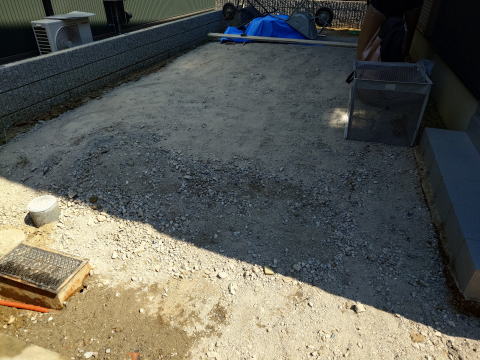 初日の工事後の写真。掘削してクラッシャーを敷いた状態です。